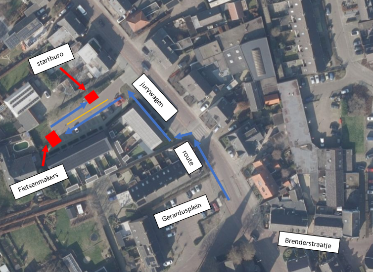 - Ingang startbureau is vanaf Gerardusplein naar start/finish boog.